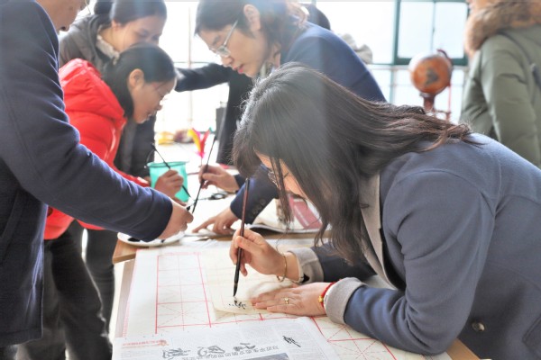 本次活动特别邀请了学校书法大师、文学院杨景亮老师莅临指导。下午4点,工科楼D座一楼大厅洒满温暖的阳光,学院工会精心准备的书桌、笔墨纸砚等活动器材都已摆放整齐,翰墨飘香,吸引了学院女教职工的积极广泛参与。