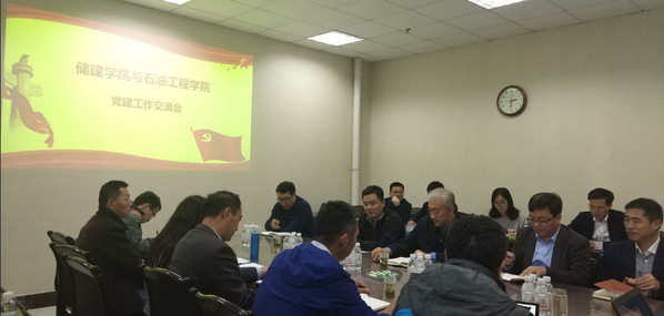 为深入学习贯彻习近平新时代中国特色社会主义思想和党的十九大精神,分享交流党建工作经验和做法,思考和谋划学院党建工作,2018年10月17日下午,储建学院党支部与石工学院党支部在工科楼B座343会议室开展交流研讨。研讨会由石工学院党委书记赵放辉主持,储建学院党委书记高平发出席,储建学院及石工学院各支部书记参加。