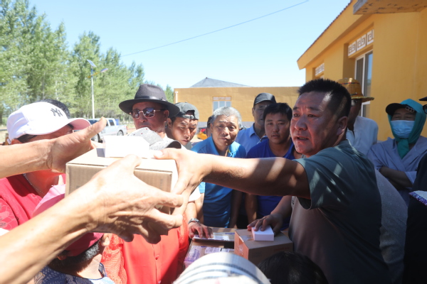 永利集团向甘旗卡镇五官嘎查村民捐赠电子血压计 杨安摄影