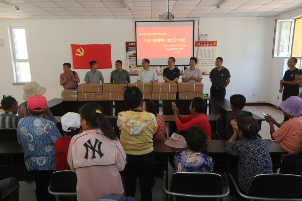 本次活动由永利集团研究生气体储运安全党支部和五官嘎查党支部联合开展,此次活动主题是“赠送血压计康健老年人”,活动受益覆盖面扩大到全村60岁以上所有常住户,保障农村老年人基本医疗。高平发书记亲切地告诉老乡们:北方地区冬天寒冷,大家要注意自己的身体健康,给大家配备电子血压计就是让各位老乡随时关注自己的身体情况,共享国家好政策。活动累计发放电子血压计100余个,投入资金近15000元。
