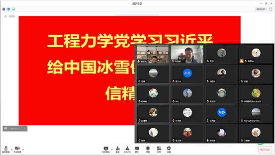 近日,储建学院工程力学党支部在党支部书记黄小光的带领下,通过线上会议形式组织开展学习贯彻习近平总书记给中国冰雪健儿重要回信精神,全系25名党员教师参加了本次活动。