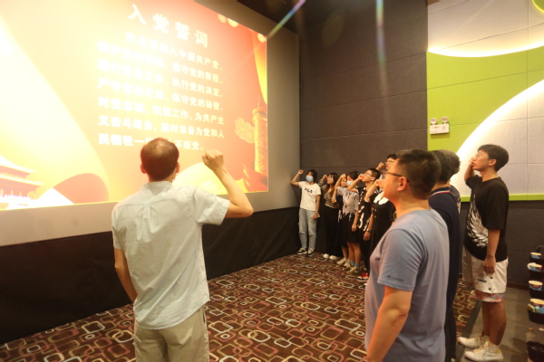 活动第二部分为师生党员共同观看影片《郭富山》,活动现场,黄小光带领参加活动的师生党员共同宣读入党誓词,重温入党初心。影片《郭富山》取材于郭富山植树造林事迹,讲述了主人公艰苦创业的艰难历程和创业过程中平凡而又感人的事迹,生动诠释了新时代的愚公移山精神。观影结束后,大家纷纷表示深受感动和鼓舞,并表示要从自身做起,坚定不移“听党话、感党恩、跟党走”,脚踏实地,苦干实干,自觉发挥党员先锋模范作用,肩负起时代重任和民族复兴的责任。