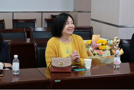 刘刚院长向李琦瑰老师献花