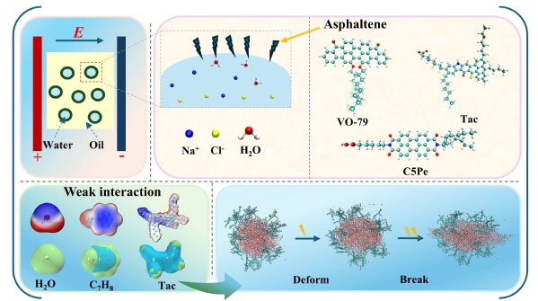 (1)阐明了电场作用对沥青质稳定乳状液的微观作用机制