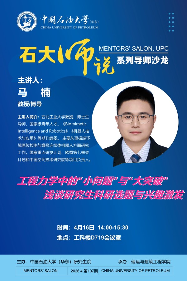 【预告】“石大师说”系列导师培训交流沙龙活动:工程力学中的“小问题”与“大突破”——浅谈研究生科研选题与兴趣激发